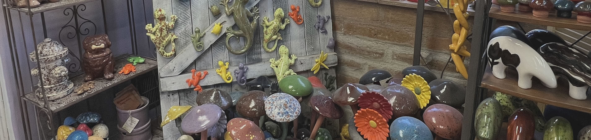 Marie is staining adobe-style terra cotta ornaments in a white wash finish. Marie loves Pokémon, music and dancing.